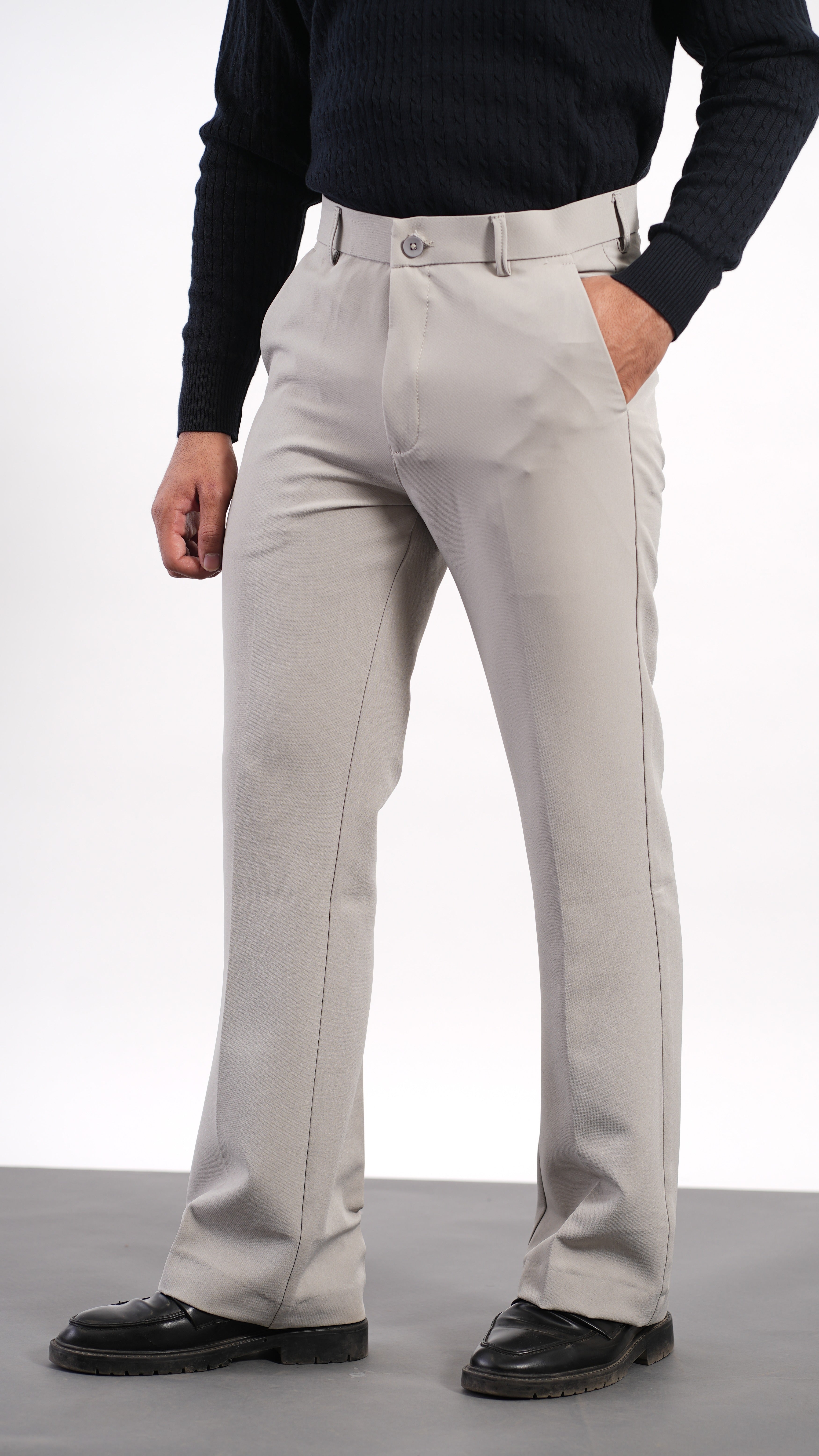 Light Grey Bootcut Pants – Premium Stretch Mid-Rise Trousers